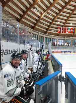 Zweiter Turniertag, viertes Spiel. Der Gegner, die Old Stars Bayern, eine zusammengewürfelte Truppe aus Spielern von Franken bis ins Allgäu, konnten mit den Eisbären nicht mithalten. In regelmäßigen Abständen erzielten die Pillnacher ihre Tore, lediglich der sehr stark agierende Torwart der Stars verhinderte ein noch deutlicheres Ergebnis. Am Ende stand es völlig verdient 4:0. für den RSC Pillnach. Nach dem Spiel ging es zum Rathaus in Füssen. Markus Gmeiner, Sportbeauftragter der Stadt Füssen, empfing zusammen mit Turnierorganisator, Thomas Hoppe, die Teams im historischen Sitzungssaal des Stadtrates. Geehrt wurden die Mannschaften die schon 10, 20 oder 30 Jahre am Turnier teilnehmen. Der RSC Pillnach ist mit 32 Teilnahmen am Internationalen Hoppe Hobby Cup der absolute Dauerbrenner. Der EC Wallernhausen war der letzte Gegner in der Vorrunde. Mit einem Sieg könnte sich der RSC Pillnach den zweiten Platz in der Gruppe und damit die Teilnahme an der Endrunde sichern. Leider funktionierte dies nicht, die Hessen waren die bessere Mannschaft. Die Eisbären konnten lange mithalten. Mitte der Partie zogen die Wallernhauser jedoch auf 0:2 davon. Der RSC war danach jedoch besser im Spiel und konnte auch auf 1:2 verkürzen die Hessen antworteten aber sofort mit dem 1:3. Danach lief einiges schief, die Eisbären waren mit einigen Schiedsrichterentscheidungen nicht einverstanden und zogen weitere Strafen. Wallernhausen nutze diese Überzahl zum 1:4 und das Match war entschieden. Zwar konnte der RSC Pillnach noch auf 2:4 verkürzen aber der Zug Richtung Endrunde war abgefahren.
