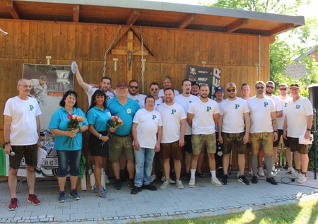 Der Tag begann bereits um 9.00 Uhr, wo nach dem Vorbereiten und Aufspießen des Spanferkels der Bieranstich folgte. Angezapft wurde von Geburtstagskind und Trägerin des Ehrenpreises "Goldener Eisbär" Silke Wertz. Gegen Mittag folgte der erste kulinarische Höhepunkt. Für die Männer und Frauen der "Sauwache" wurden frisch geräucherte Saiblinge und Forellen serviert. Gleich danach ging es auch mit dem Wettbewerb um den "Uns is nix z´bläd Pokal - Auszeichnungspreis" los. Gewinner in der "Ice Floe Estimate" wurde Kevin Bauer aus Pillnach. Bei herrlichem Sommerwetter hatte sich der Biergarten des HdG schon gut gefüllt. Unter den Gästen befanden sich unter anderem der Ehrenvorsitzende des RSC Pillnach Erich Schuster mit Gattin, Franz Rössler Gründer der Sportschützen Pillnach mit Frau, der zweite Bürgermeister der Gemeinde Kirchroth Alois Eiglsperger und die Pillnacher Gemeinderäte. Bevor man sich nun auf den Weg zum "Meister-Balkon" machte, war die Stärkung am Kuchenbuffet angesagt.