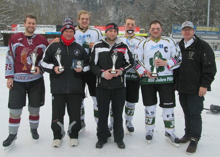 Wie in den vergangenen Jahren nahmen neben den beiden RSC-Mannschaften das Eishocheyteam der Kolpingfamilie Deggendorf und die Pheasants aus Füssing teil. Der RSC I gewann seine ersten beiden Spiele mit 7:1 (RSC II) und 10:1 (Kolping). Ebenso starteten die Pheasants aus Füssing mit zwei Siegen. Die Fasane schlugen Deggendorf mit 4:0 und setzten sich auch gegen die Zweite aus Pillnach knapp mit 2:0 durch. Nach diesen vier Begegnungen stand also fest, dass es im nächsten Spiel (RSC Pillnach II gg. Kolping Deggendorf) um den dritten Platz und in der letzten Partie des Tages, in dem die beiden unbesiegten Teams, aufeinander trafen um den begehrten Turniersieg ging. Das Spiel um den dritten Platz startete furios. Zweite Minute 1:0 RSC II, vierte Minute Ausgleich Kolping, sechste Minute Führung Kolping. Danach wurde es etwas ruhiger aber die Deggendorfer konnten die Führung auf 3:1 ausbauen. Die Eisbären steckten nicht auf und konnten kurz darauf erneut den Anschlusstreffer erzielen. Am Ende des Spielabschnitts ein weiteres Tor der Deggendorfer und der neuerliche zwei-Tore-Vorsprung. Hoffnung keimte nochmal auf als, früh im letzten Drittel, die Zweite auf 3:4 verkürzen konnte. Im weiteren Verlauf des Spiels versuchten die Eisbären durch mehr Offensive das Match noch zu ihren Gunsten zu drehen und mussten dabei noch zwei weitere Gegentreffer hinnehmen. Die Partie um Platz eins im Turnier verlief wesentlich unspektakulärer. Relativ schnell ging der RSC Pillnach I mit 3:0 in Führung, agierte in der Folgezeit souverän und schaukelte das Spiel gekonnt nach Hause. Lediglich der 3:1 Anschlusstreffer der Fasane im letzten Drittel sorgte noch für ein kurzes aufbäumen der Füssinger. Die Eisbären ließen sich davon aber nicht irritieren und feierten zu recht den Turniersieg.